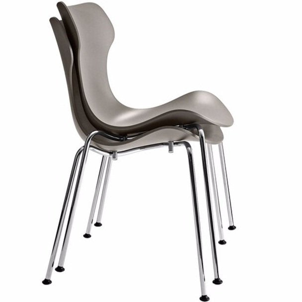 Papilio outdoor shell chair in greige with stainless steel legs. The Papilio Shell chair is the new seat that enriches the Papilio collection created by designer Naoto Fukasawa and realized by B&B Italy, leader company in made in Italy design. The design of the Papilio Shell chair is independent of the rest of the collection; composed of a cozy and comfortable shell, this model is highly versatile and can be used in many situations.