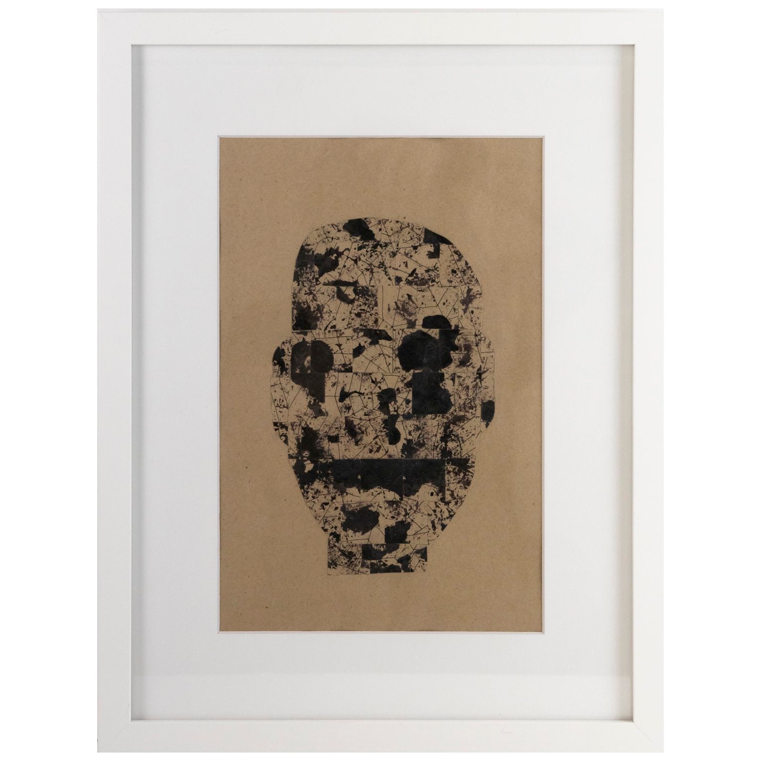 Darrell Dean's artwork is handmade and unique one-of-a-kind on brown paper using pen, ink, paint, pencil, coffee, bleach, and other natural elements with various techniques including drawing, painting, staining, and collage. Each artwork is matted and framed in a white wood frame with glass.
