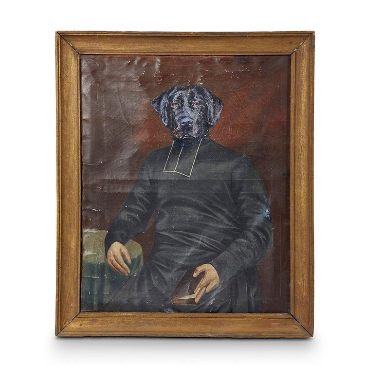 Vintage Dog Priest Painting