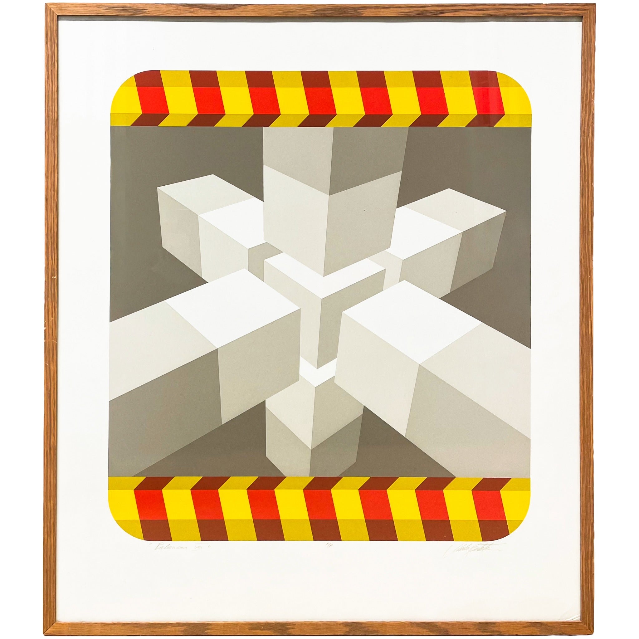 From the artist: "My work represents a continuous involvement with abstract geometric forms defined by careful manipulation of color and light. The relationship between form and color within the pictorial field demands a visually symbiotic presence."