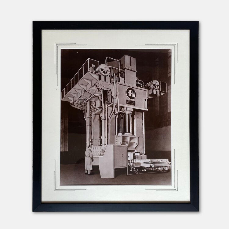 Vintage photograph of machinery at the HPM Machine Company. Still in business today, the company manufactures injection mold and die cutting machinery for industry usage.