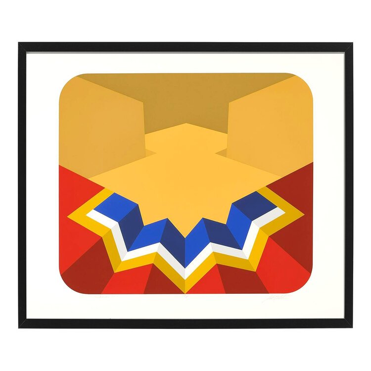 From the artist: "My work represents a continuous involvement with abstract geometric forms defined by careful manipulation of color and light. The relationship between form and color within the pictorial field demands a visually symbiotic presence."
