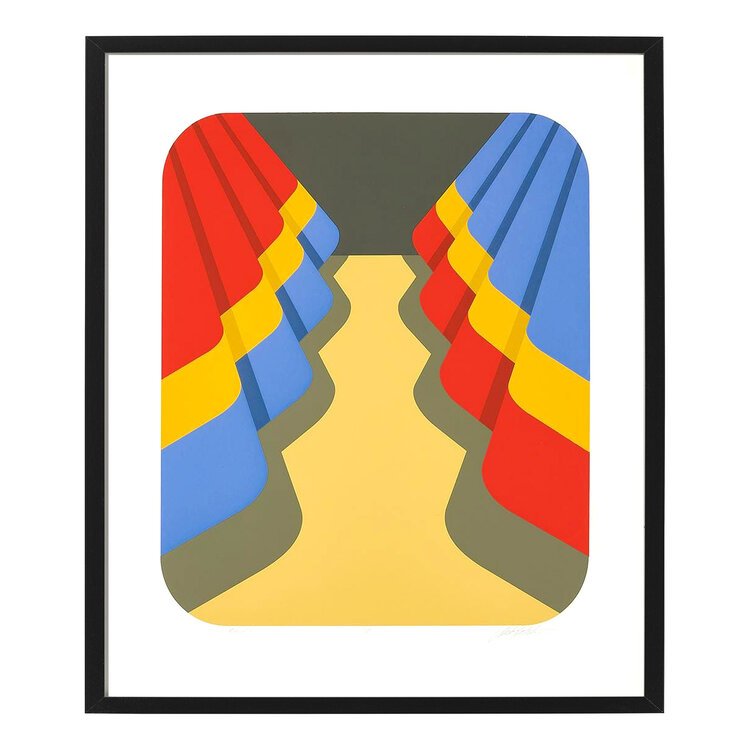 From the artist: "My work represents a continuous involvement with abstract geometric forms defined by careful manipulation of color and light. The relationship between form and color within the pictorial field demands a visually symbiotic presence."