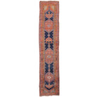 An exceptional late 19th-century West Persian Kurd rug, handwoven in a rare long gallery format. Featuring bold tribal motifs and a rich village aesthetic, this rug carries the distinctive character and artistry of Kurdish weaving traditions. Its impressive length and authentic patina make it a true collector’s piece as well as a striking decorative statement.