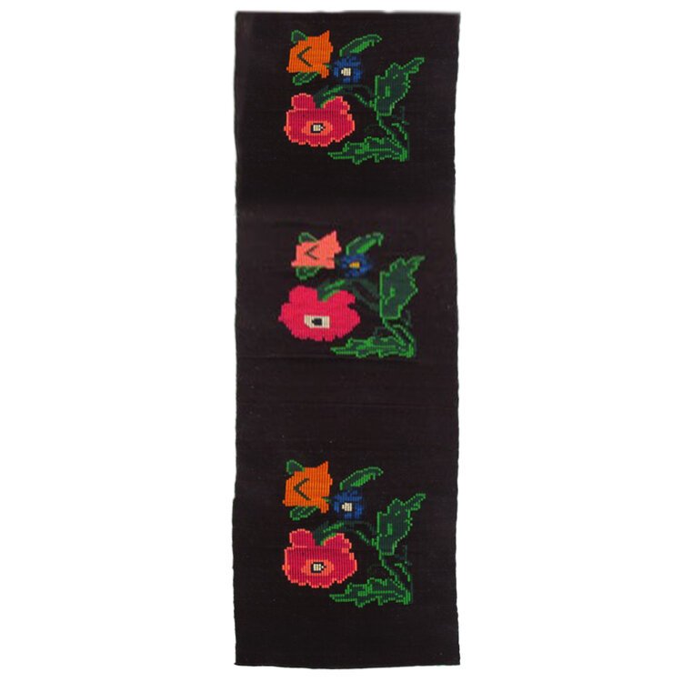 Black floral handmade Turkish Anatolian runner.