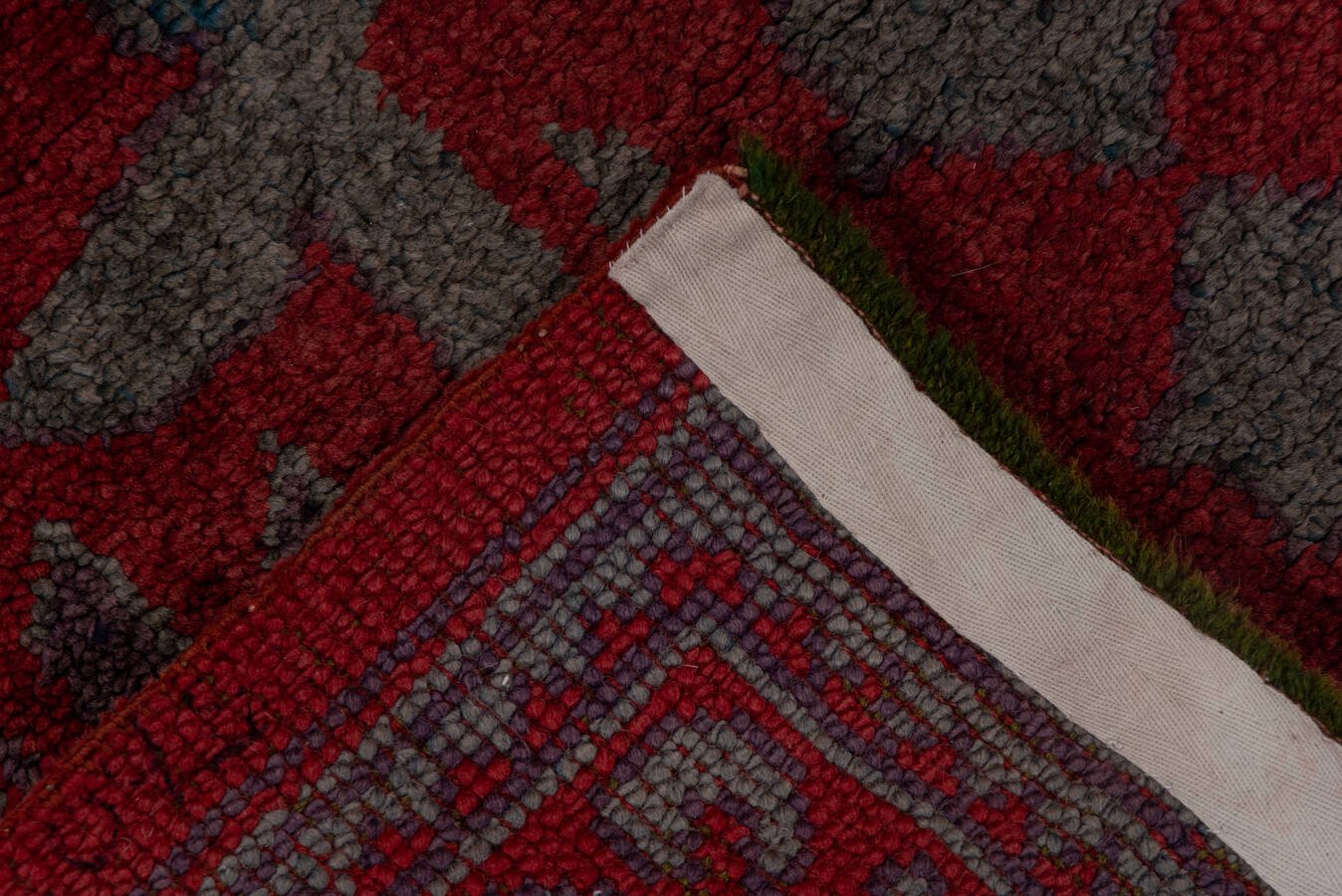 Antique Oushak Runner circa 1920 is 100% wool and woven with a layer of decadent floral vinery design upon deep crimson background. It’s equally sophisticated and stunning!