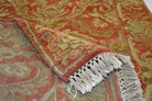 A traditional design with a deep crimson field provides a bold backdrop for the all-over pattern of classic floral motifs in green and gold hues. 100% Wool