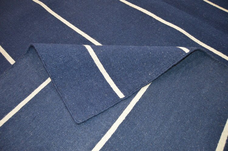 Classic with a bold stripe, this nautical flat weave area rug offers reversible use for easy care and timeless durability. 100% Wool