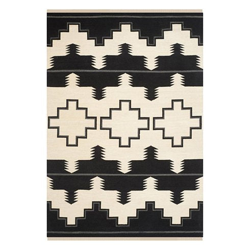 Ralph Lauren’s Plains Creek collection features Southwestern-inspired weaving motifs rendered in a contemporary, oversized scale. Masterfully hand-knotted from soft wool fibers, the traditional Soumak weave creates a brocade-stitch effect that emphasizes the exceptional character of natural materials. Detailed with fringe edges, the geometric pattern adorns both sides of this rug, making it fully reversible. The Black Mountain colorway incorporates pure cotton yarns in addition to its wool base.