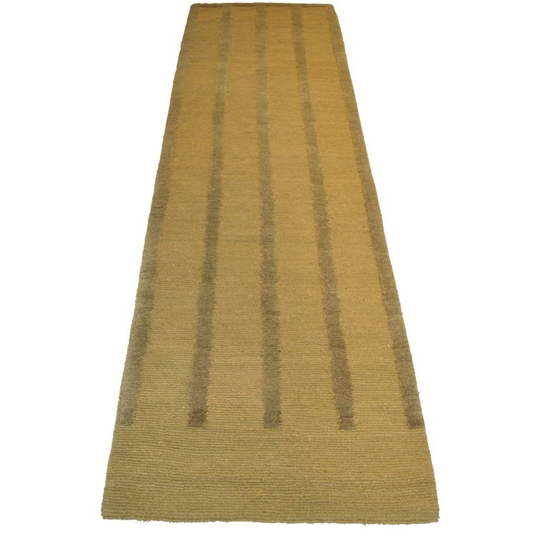 Tibetan hand-knotted runner with a simplistic linear modern design in sage and olive tones.