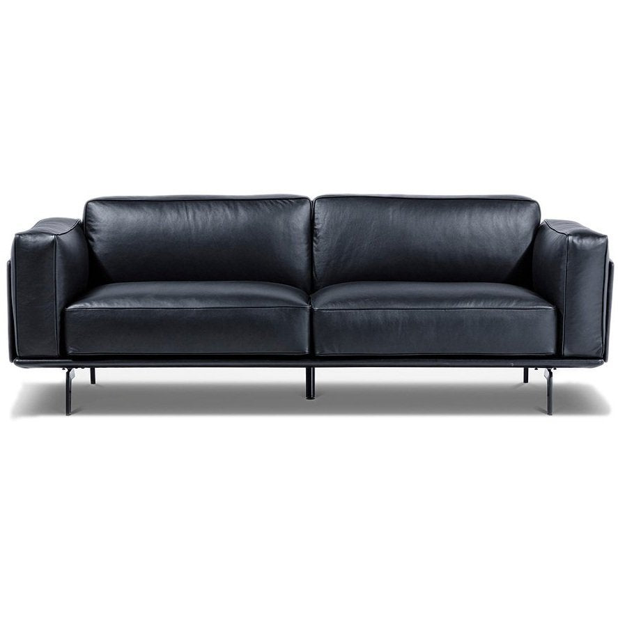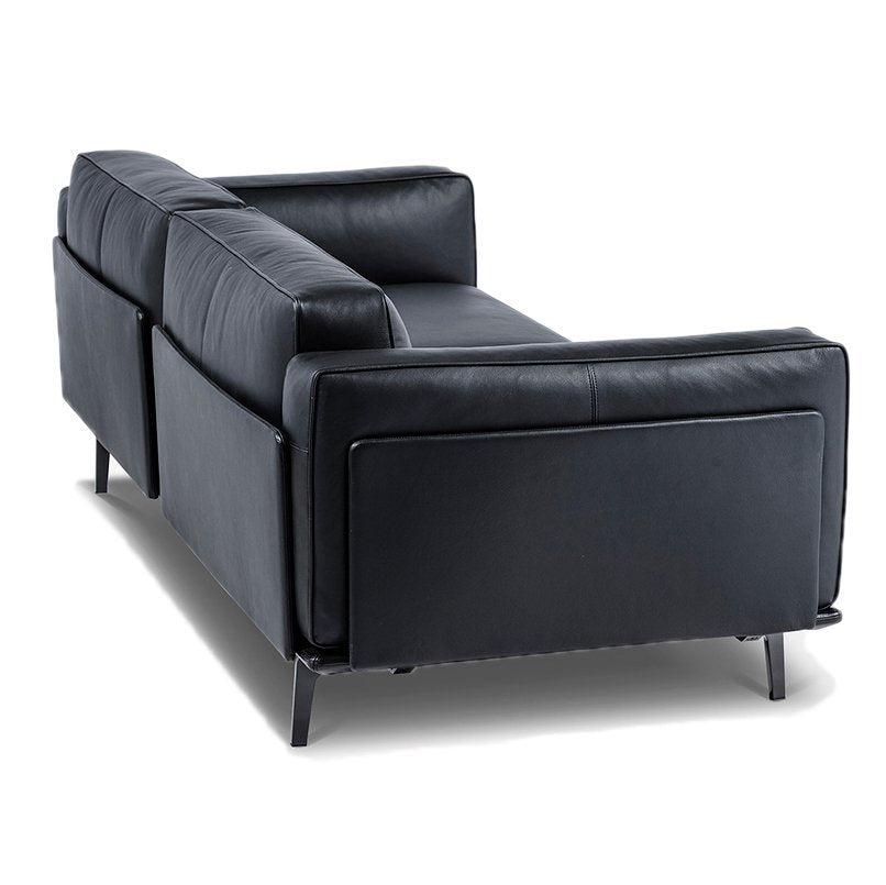 The Montauk Sofa series delicately presents a balanced design between form and comfort. On the outside, it is structurally supported by metal panels wrapped in choices of high-performance Eco-Leather or Top Grain leather. On the inside, it is fitted with plush yet supportive cushions consisting of foam and feather-down wrap. The exceptionally comfortable seats rest atop streamlined metal legs, with a steel seat frame with cross-woven elastic webbing and sinuous springs. The Montauk Sofa is chic enough for a posh New York City condo yet cozy enough for a mountain cabin in Vail; this beautiful yet simple design fits seamlessly into any backdrop.
