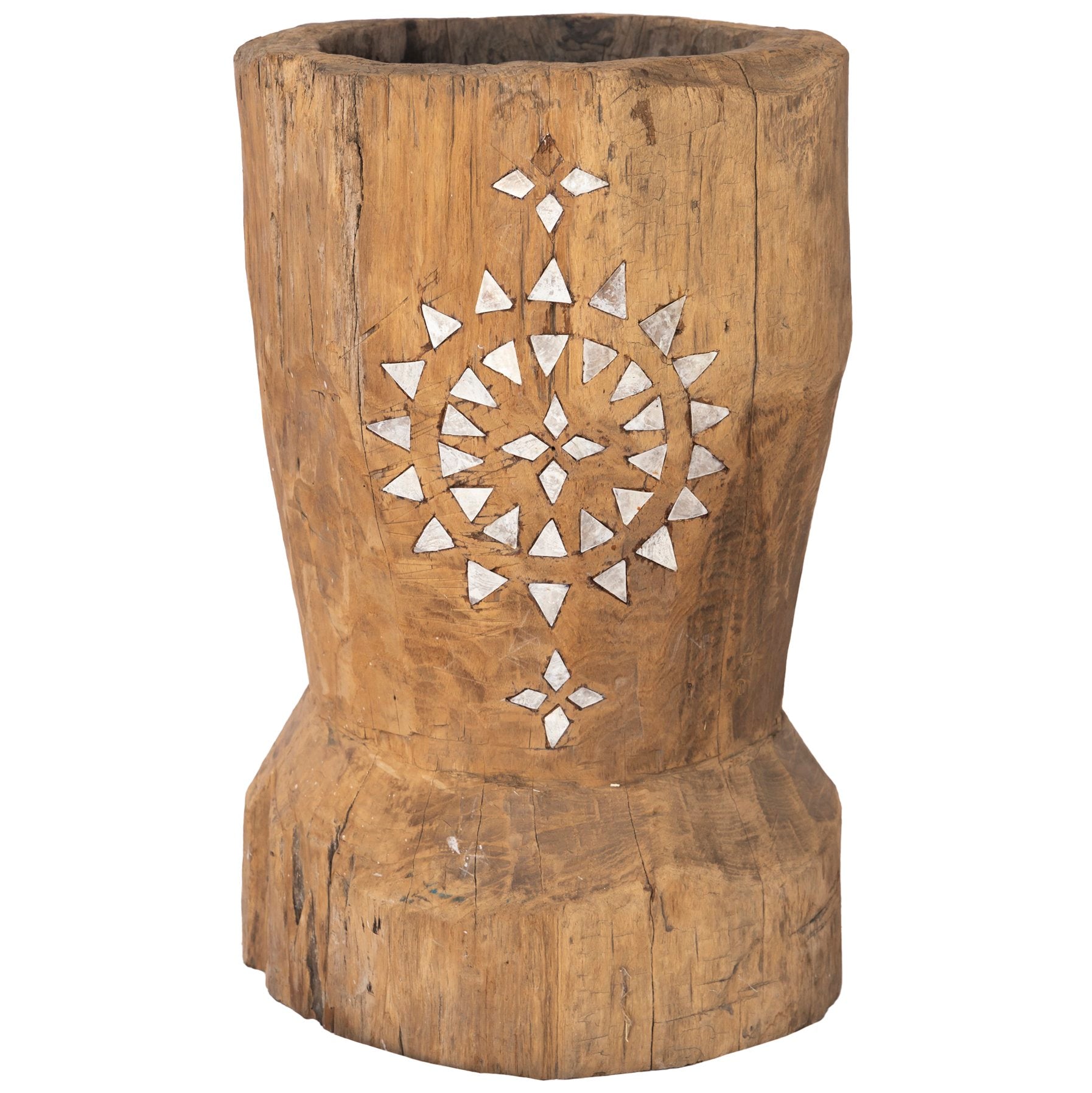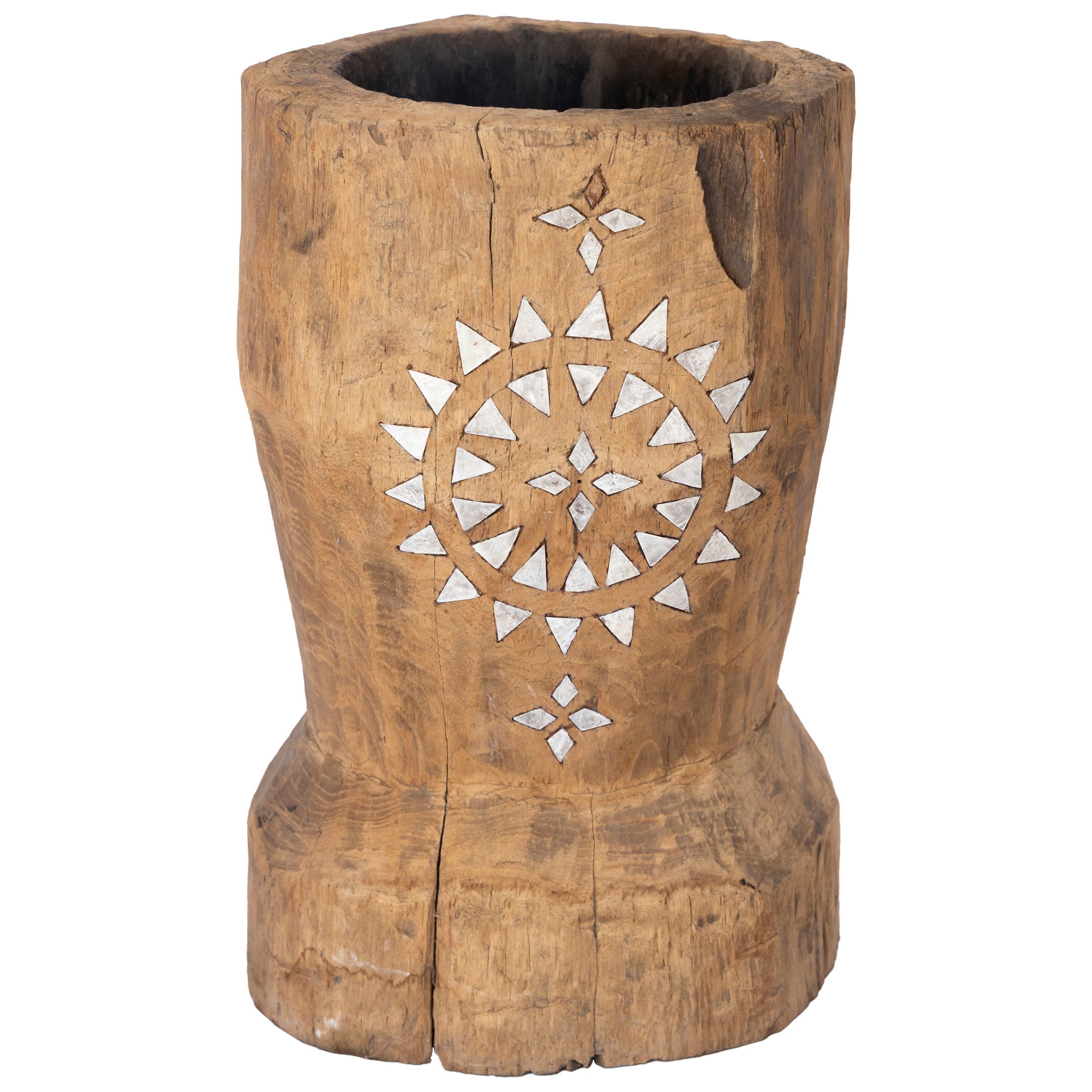 Vintage large-scale mortar with a mother-of-pearl inlay design. It can be used as an indoor planter or stand-alone as a sculptural piece.