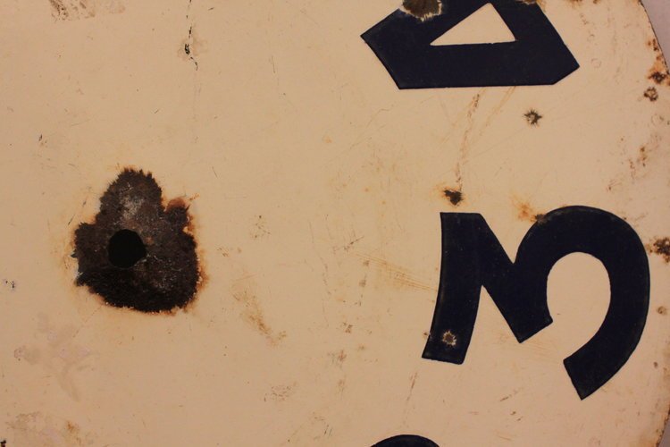 Vintage enamel wheel with numbers.