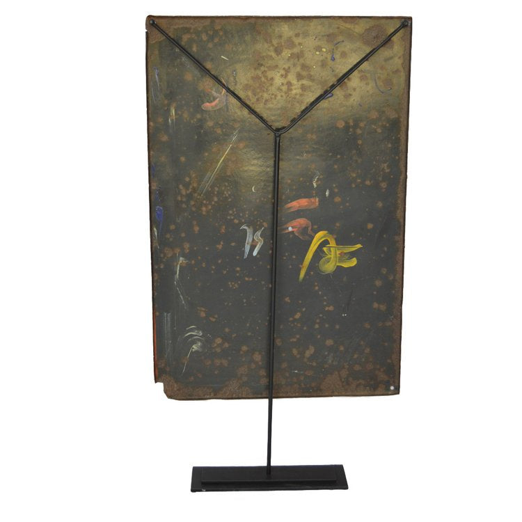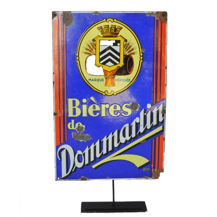 Vintage metal plate on a stand. The sign says “Beer of Dommartin.