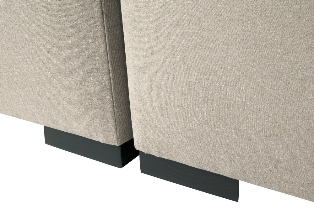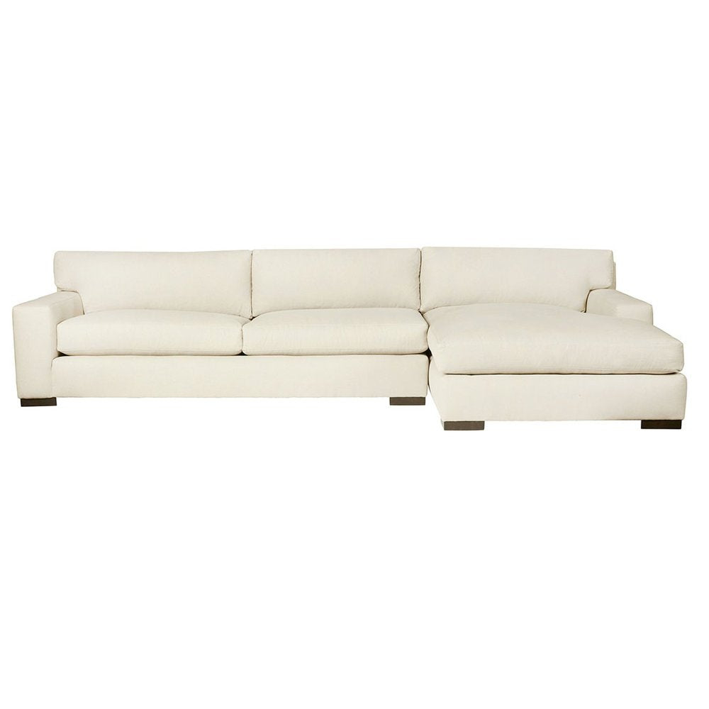 The Long Beach upholstered two-piece sectional is all about immense, solid comfort. Boxy and relaxed, the Long Beach boasts thick armrests for a more casual feel and is wide enough to rest your readers, a book, or a remote control. Seating support is soft-edge, and the cushions can be fabricated as optional benches or multi-seated. The low, squared block legs are made from maple, which is known for its hard and rigid surface. They are available in ten harmonious finishes (five of them are eco-friendly and water-based).