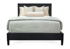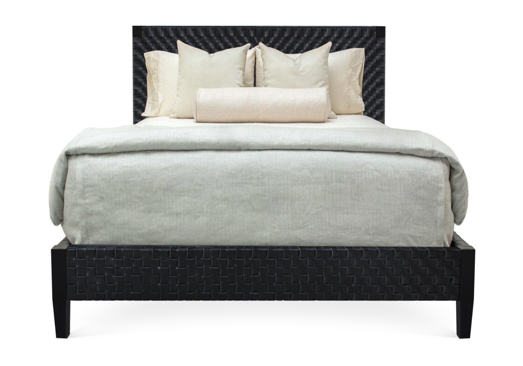 This queen bed features a wood frame with woven leather detail, adding the right amount of contrast to any bedroom.