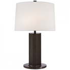 Finished in dark bronze with a white linen shade, the Bentzen Table Lamp brings statuesque simplicity to a living space.