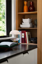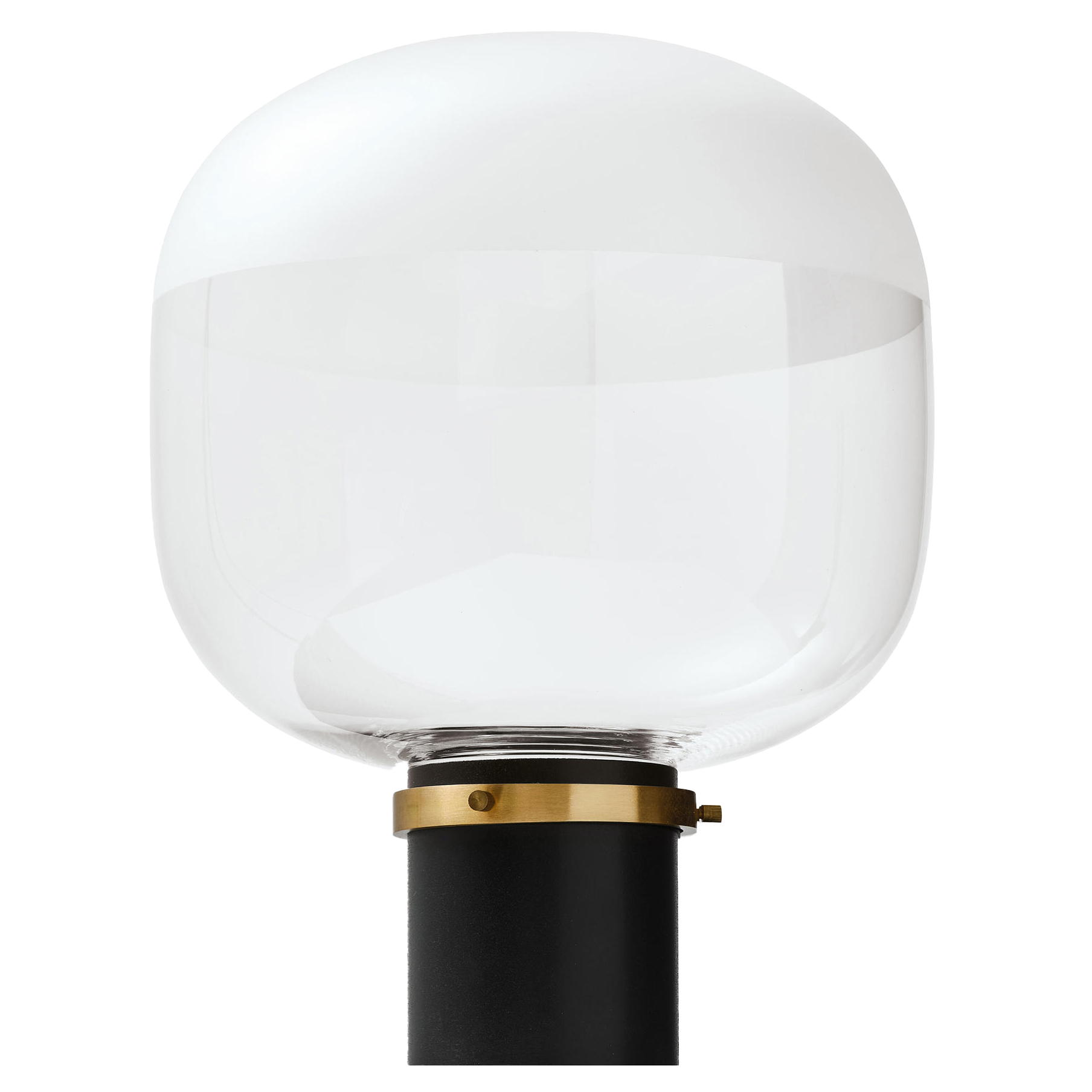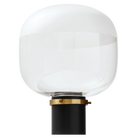 Graz is a table lamp with diffused and direct light. The blown glass diffuser is made with a mix of transparent and satin finish to ensure a better expansion of the light in the environment. The support is made of metal in a single variant of black and gold.