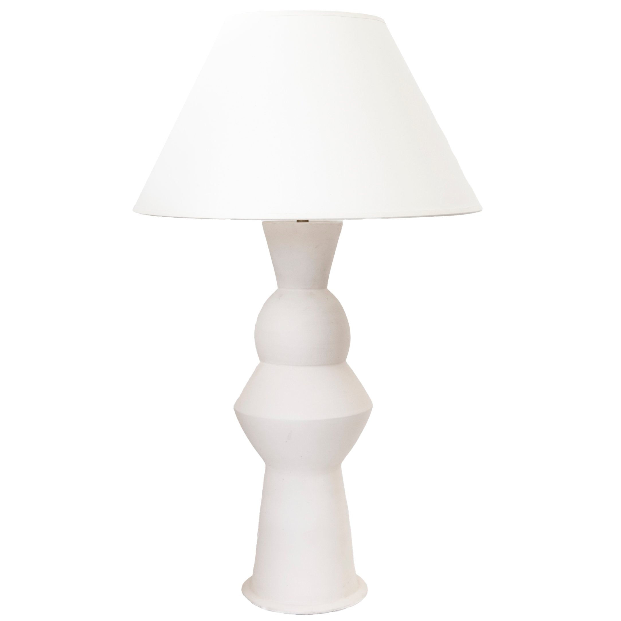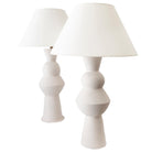Crisp, clean Moroccan vibes. The matte chalk-white finish adds a soft yet textured look to these sculptural ceramic table lamps with a linen shade.