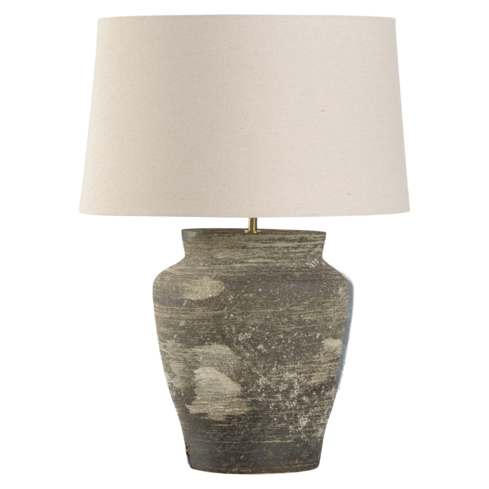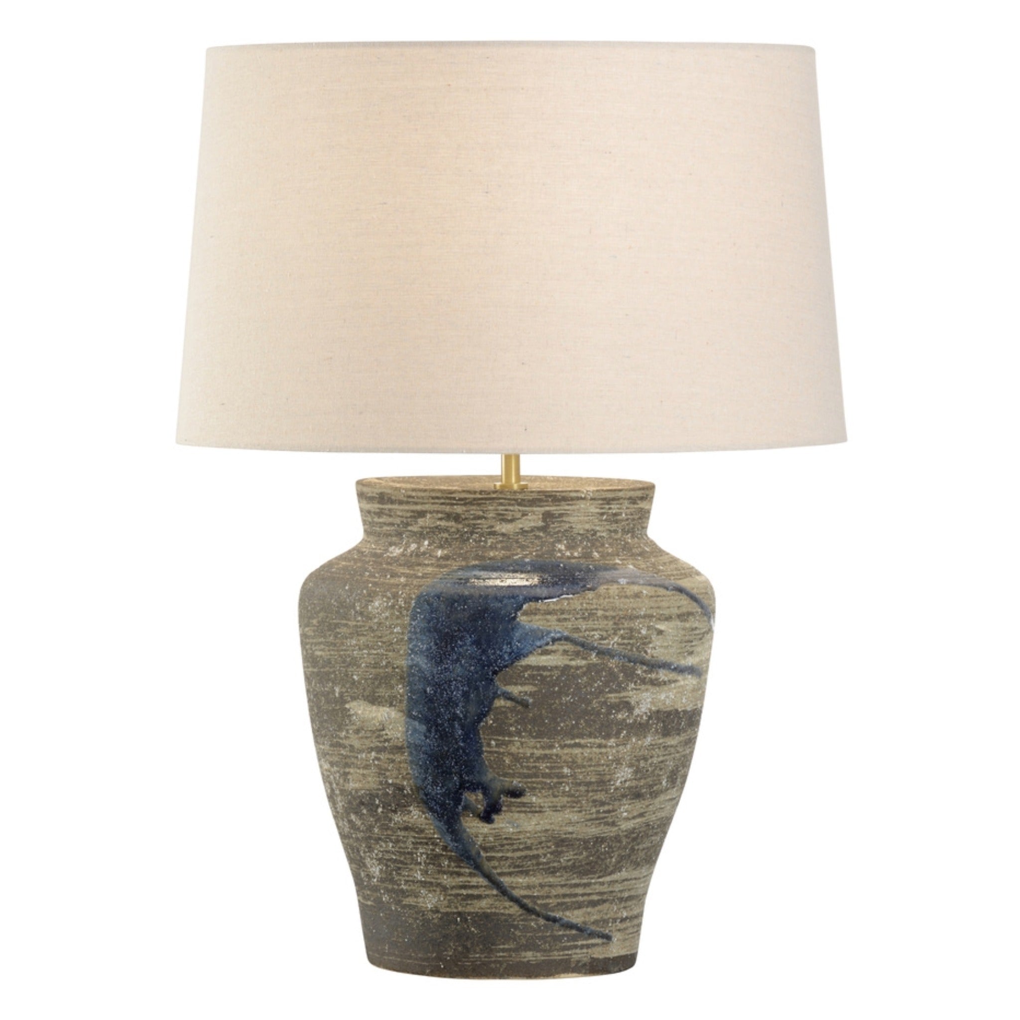 The Riga Table Lamp offers a modern interpretation of traditional Japanese artistry, combining raw clay with a smooth drip glaze. The hand-turned ceramic body features a natural, earthy finish that highlights the organic texture of the clay unique to the Shigaraki region, while the glossy indigo glaze flows down the surface. This fusion of rough and refined elements makes the Riku Lamp a unique statement piece that blends beautiful craftsmanship with contemporary design.