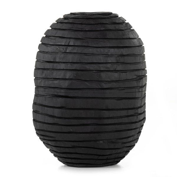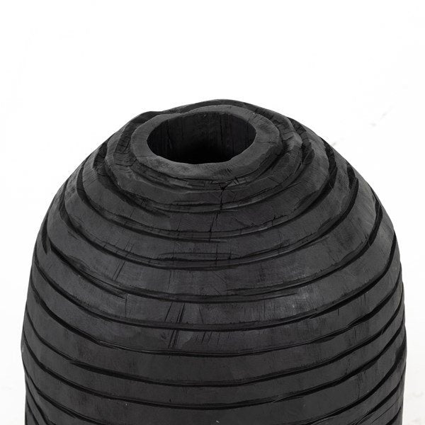Made from mixed reclaimed wood, a carbonized black finish accentuates hand-carved horizontal banding for a unique, linear look with natural character. For decorative use only, Beaune looks excellent atop a sideboard or buffet, styled with dried flowers or foliage. Vase is not watertight.