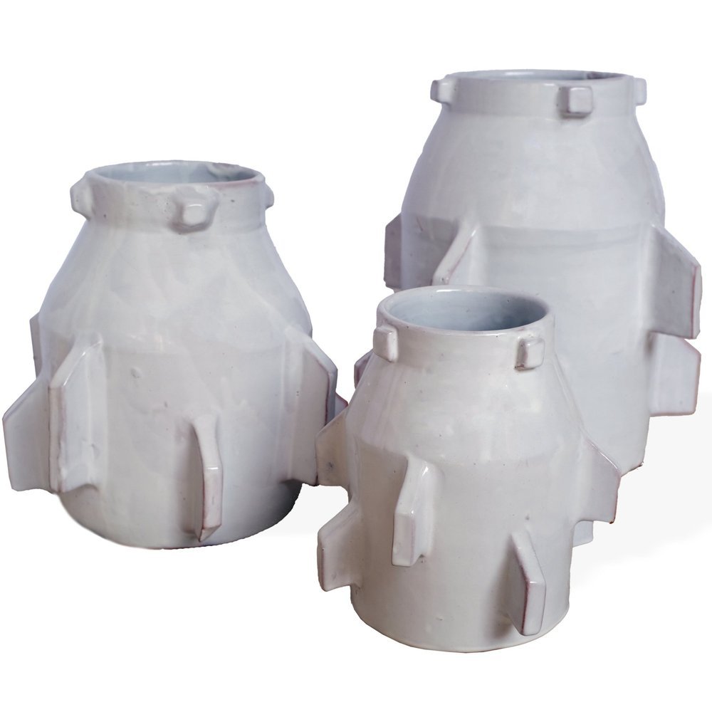 Crisp, clean Moroccan vibes. The high gloss white finish adds a modern polished look to these whimsical ceramic vessels. They look fantastic individually or make a statement with several grouped together.