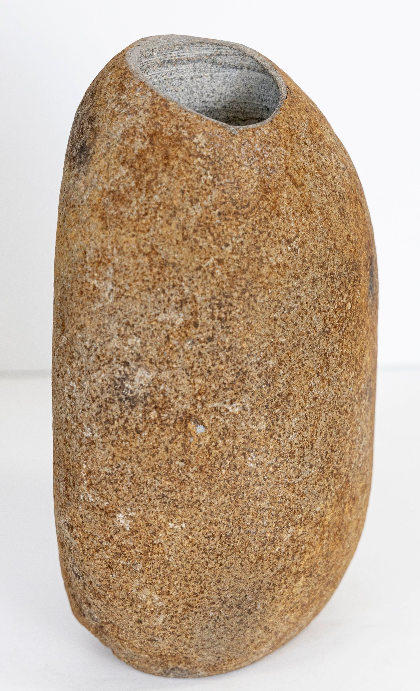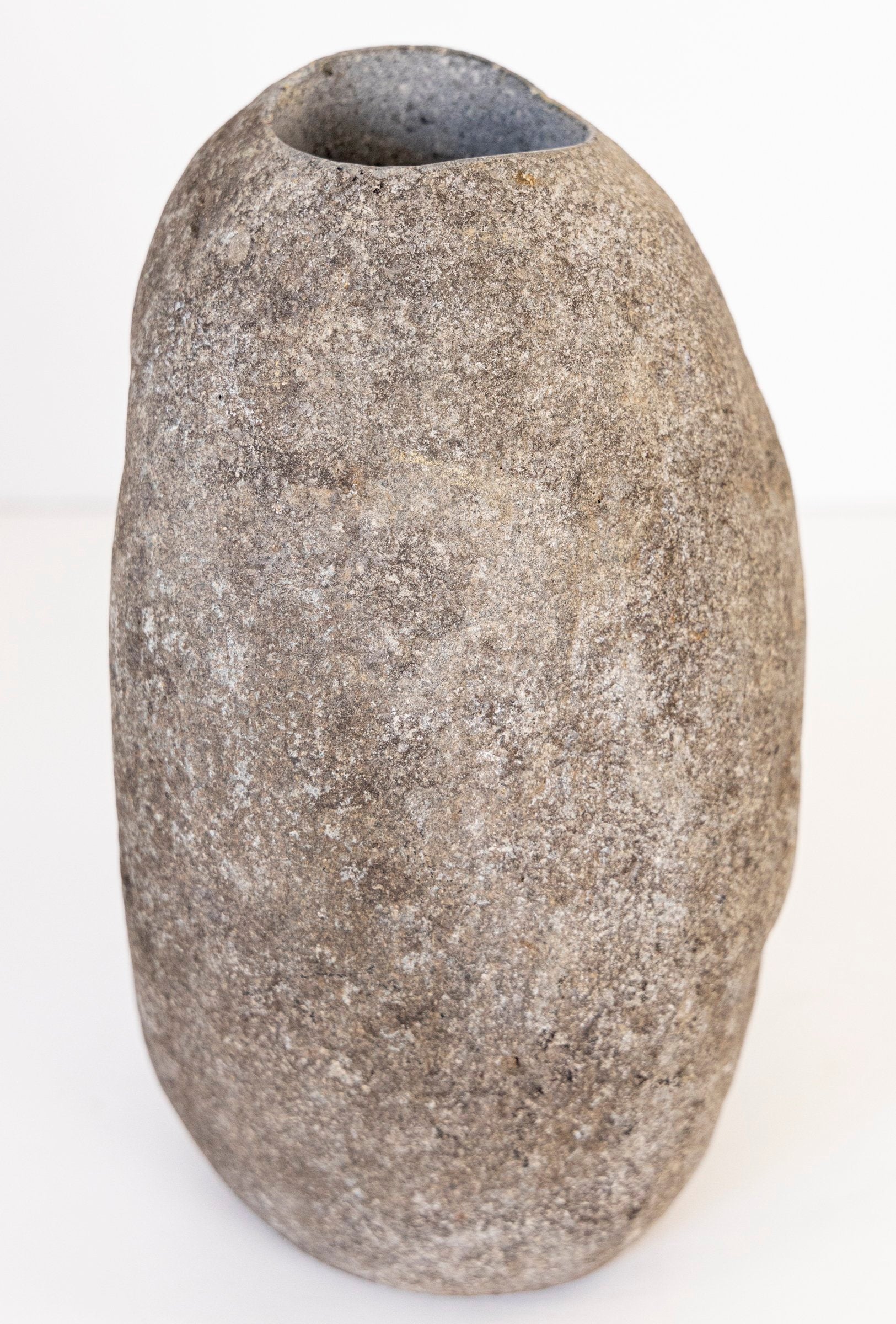 This vase is made from sustainable Riverstone, perfect for holding flowers or plants. The stone is carved into a natural beautiful shape that is perfect for any home or office, and its natural color complements any décor.