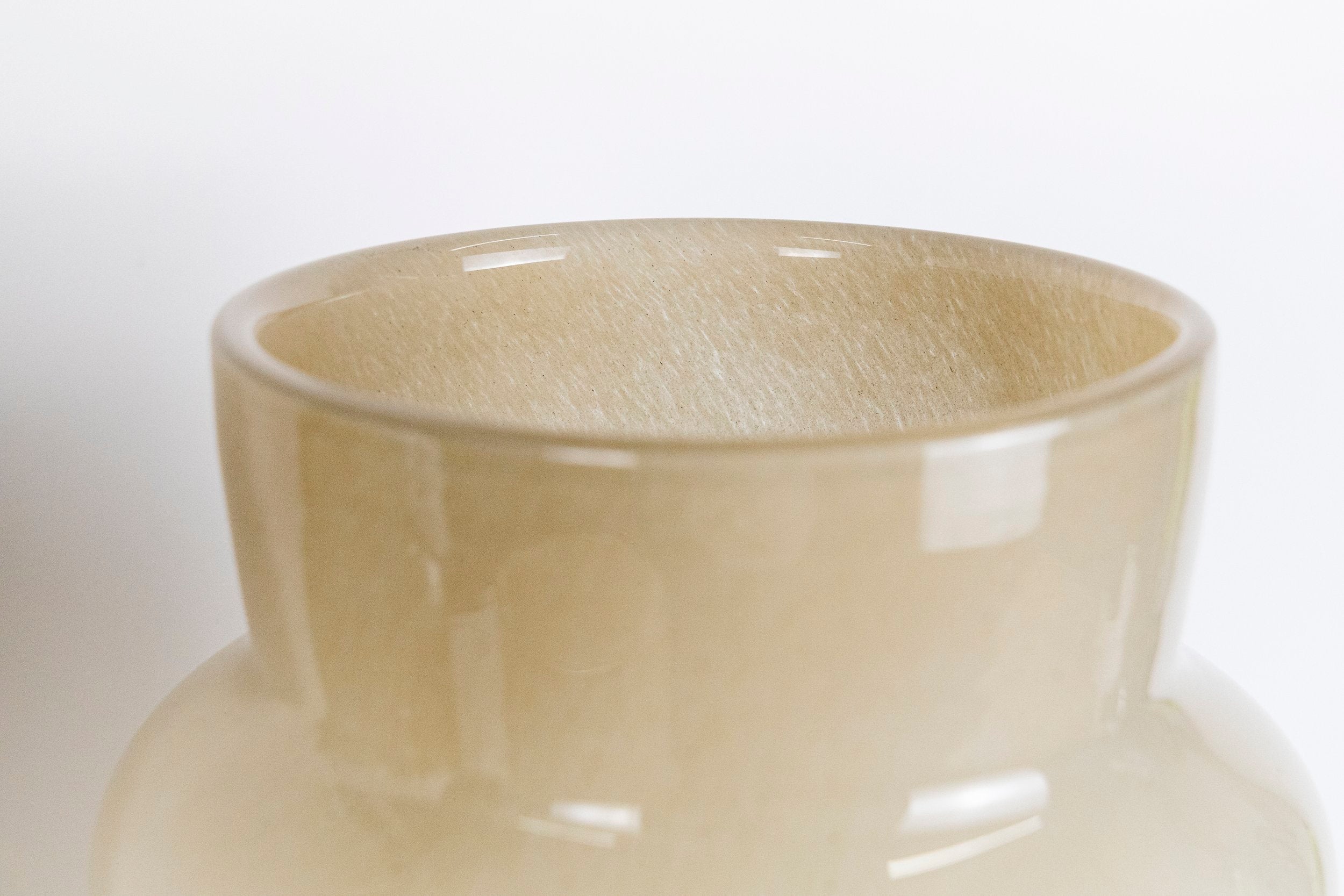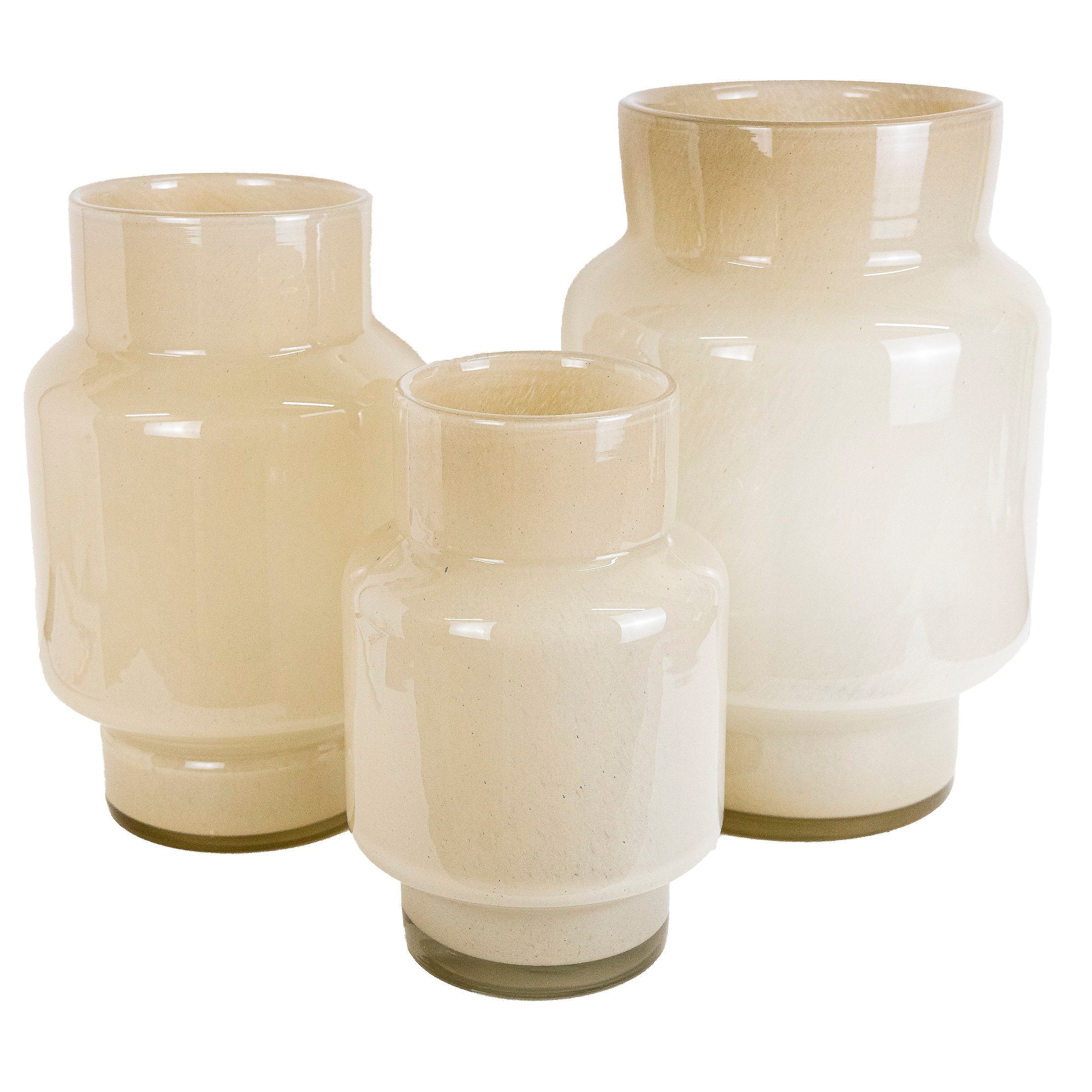 These unique glass vases are timeless, hand-blown, and of uncompromising quality. Minimal but present, it’s crafted in a sculptural silhouette complimenting the ivory color. Sold individually, group together for a stunning impact.
