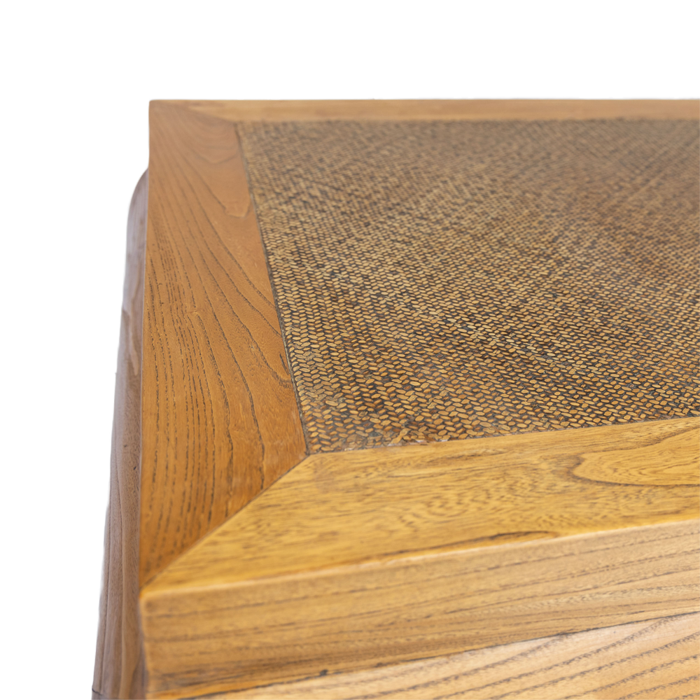 This Antique Chinese coffee table with a woven rattan inset top features elegant lines, lovely proportions, and understated elegance. With a beautiful patina and a combination of materials, this coffee table will bring an exotic touch to any home.