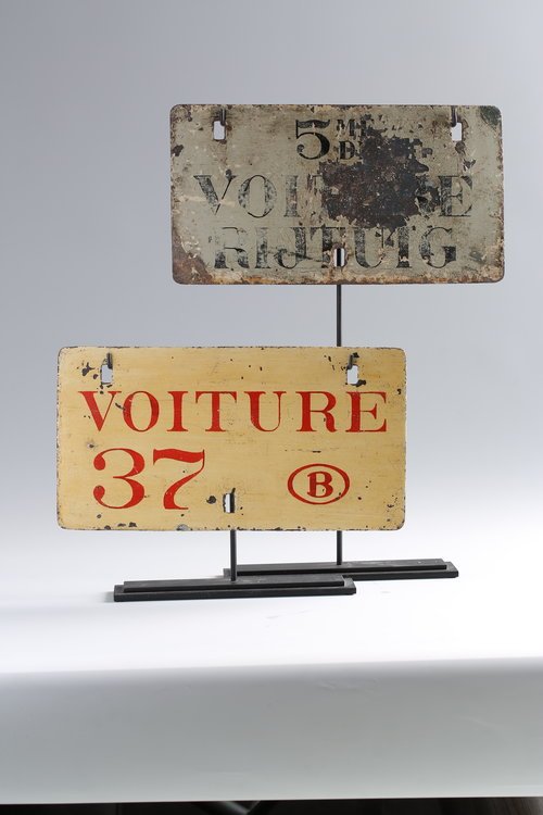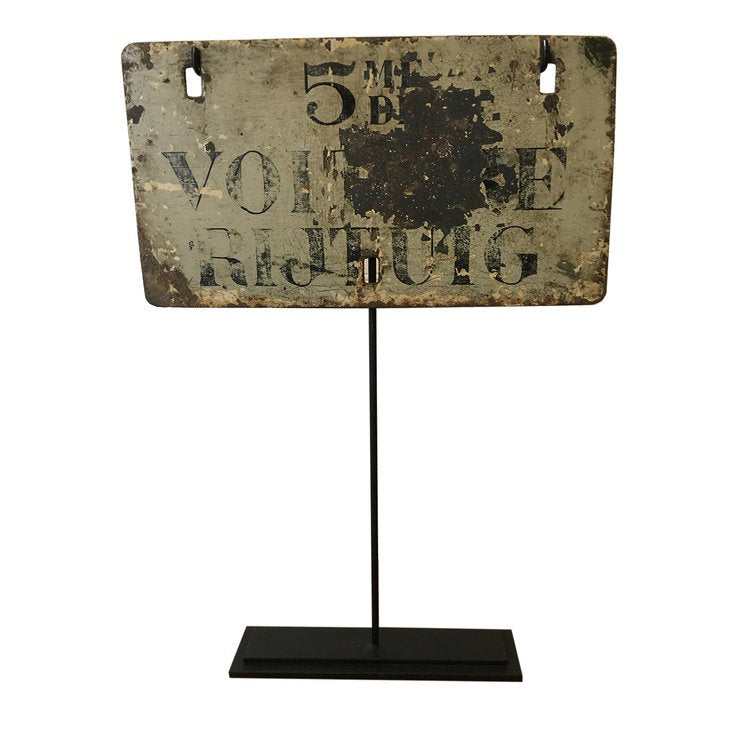 French metal sign on stand, circa 1950.