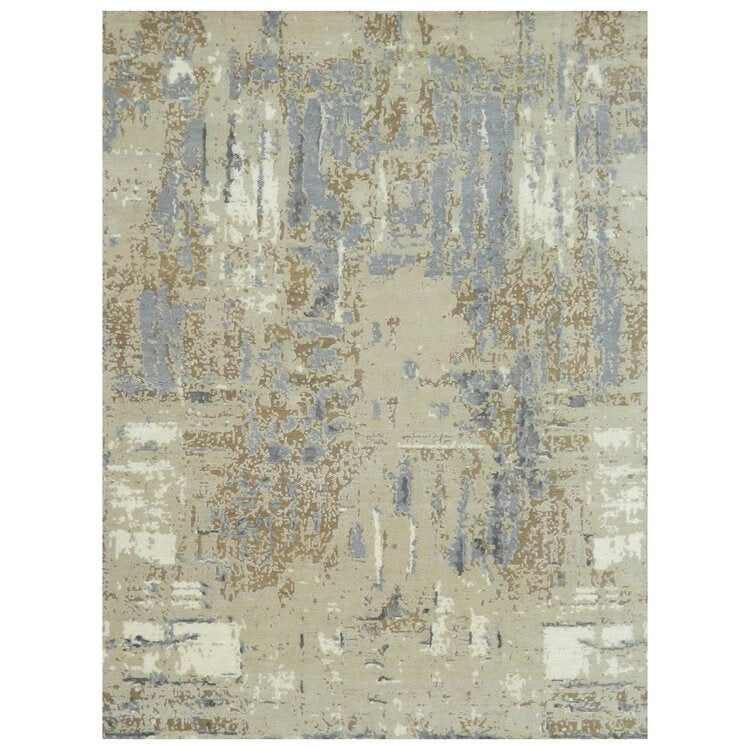 Hand-knotted wool-silk blend with a contemporary abstract pattern.