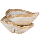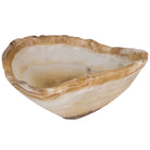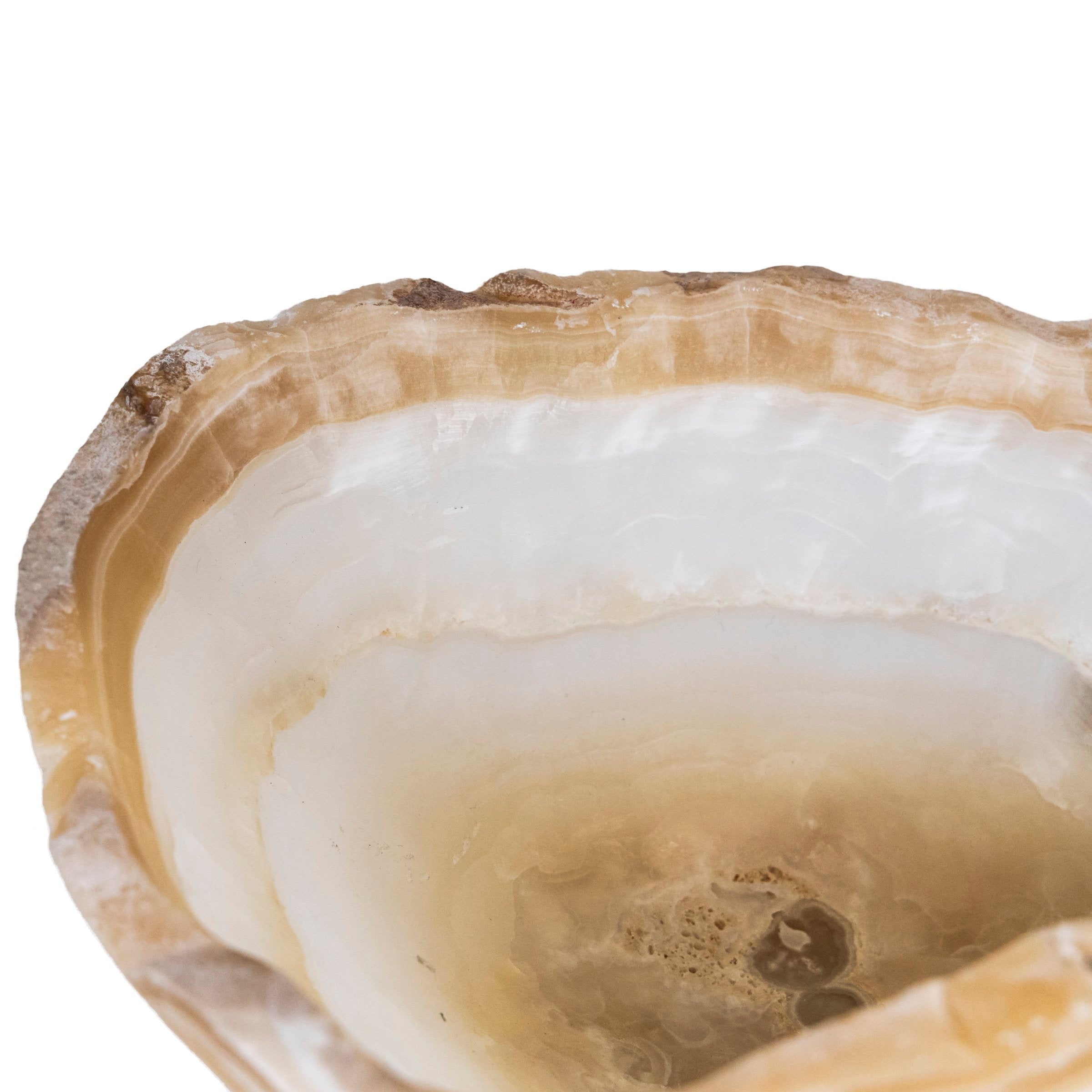 Polished onyx bowl with golden butterscotch and light brown veining.