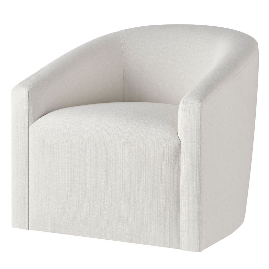 The Clover Swivel Lounge Chair is a modern reinvention of the classic barrel chair. This effortlessly stylish swivel chair is fully upholstered with a tight seat and back that maintains its clean look. The curved back and sloped arms bring an equally contemporary and comfortable aesthetic to any room in the house. The sculptural design is available in a wide range of fabrics or your choice of COM.