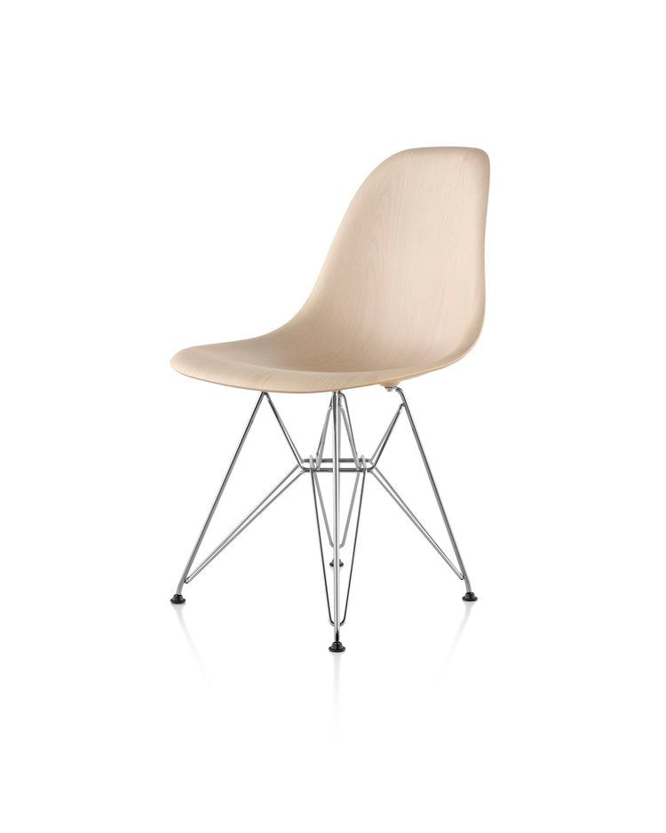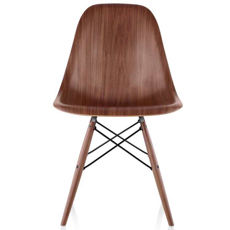 Charles and Ray Eames realized their dream to create a single-shell form over 80 years ago by making their molded fiberglass chairs. When the environmental risks of that material became known, the Eames Molded Shell Chair (1950) was changed to polypropylene, which is 100% recyclable and has a pleasant matte texture. In 2013, Herman Miller safely brought back the fiberglass shell thanks to a new proprietary production process. Today’s fiberglass chair is made of 99% recyclable materials and covered by Herman Miller’s take-back program for environmentally sound recycling. Plus, it’s true to the original with its beloved variegated surface. Also making its debut in 2013 was the stunning Eames Molded Wood Chair, a longtime dream of the Eameses finally made possible by today’s revolutionary 3-D molding technology. The result is an elegant yet strong and durable beautiful wood shell. The collection was expanded again in 2015 to include a counter stool and barstool. Each provides just the right amount of giving, with a deep seat pocket and waterfall seat edge to reduce pressure on the backs of the thighs. The Molded Shell Chair celebrates the Eameses’ fascination with emerging materials. “The chair that Charles and Ray were designing,” says grandson Eames Demetrios, “is the chair that’s made tomorrow.” This is an authentic Eames Chair by Herman Miller.