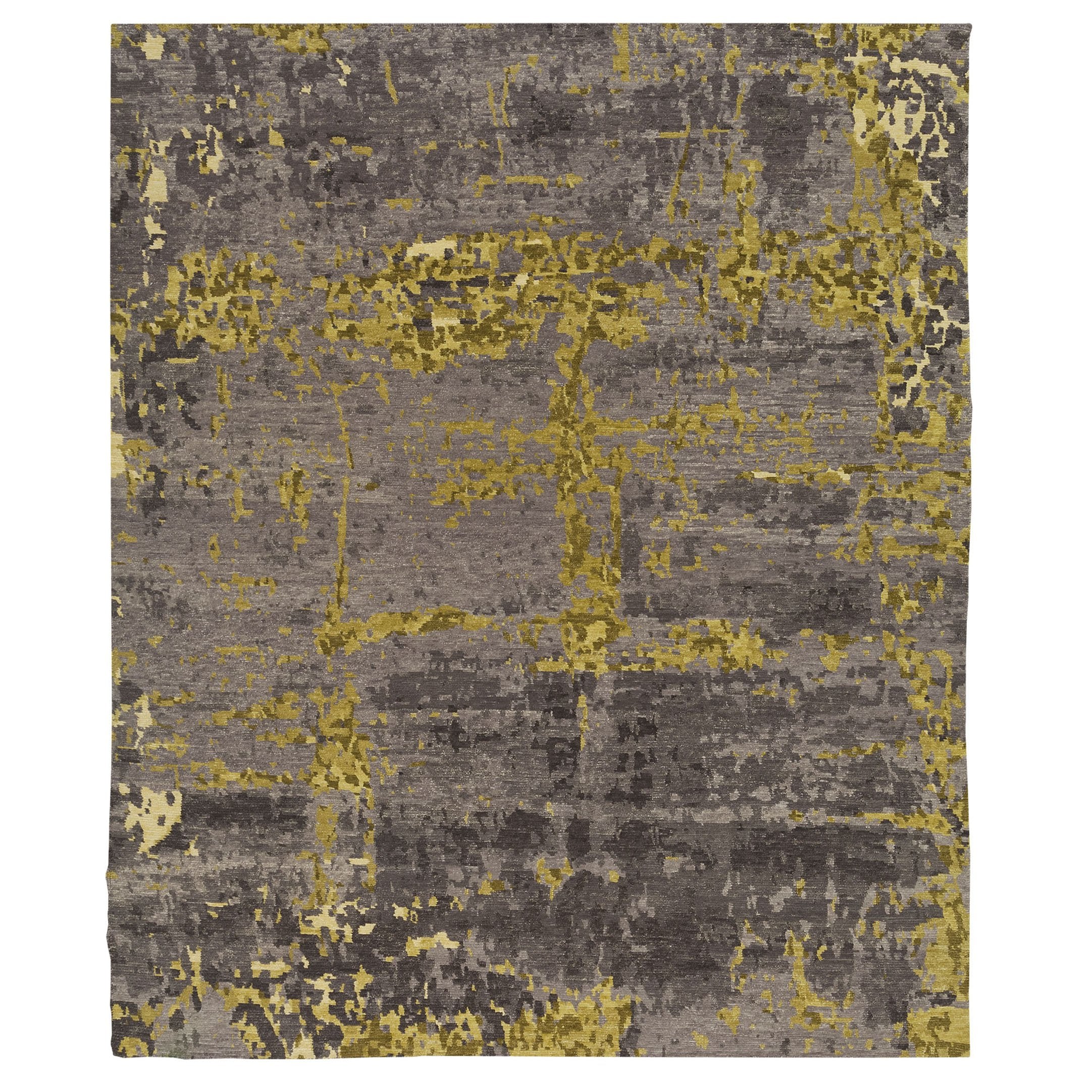 An abstract motif with a painterly feel, the subdued neutral colors of this handmade rug are layered with vibrant chartreuse tones. The metallic-like colors and artistic design brings an energetic approach to contemporary area rugs,