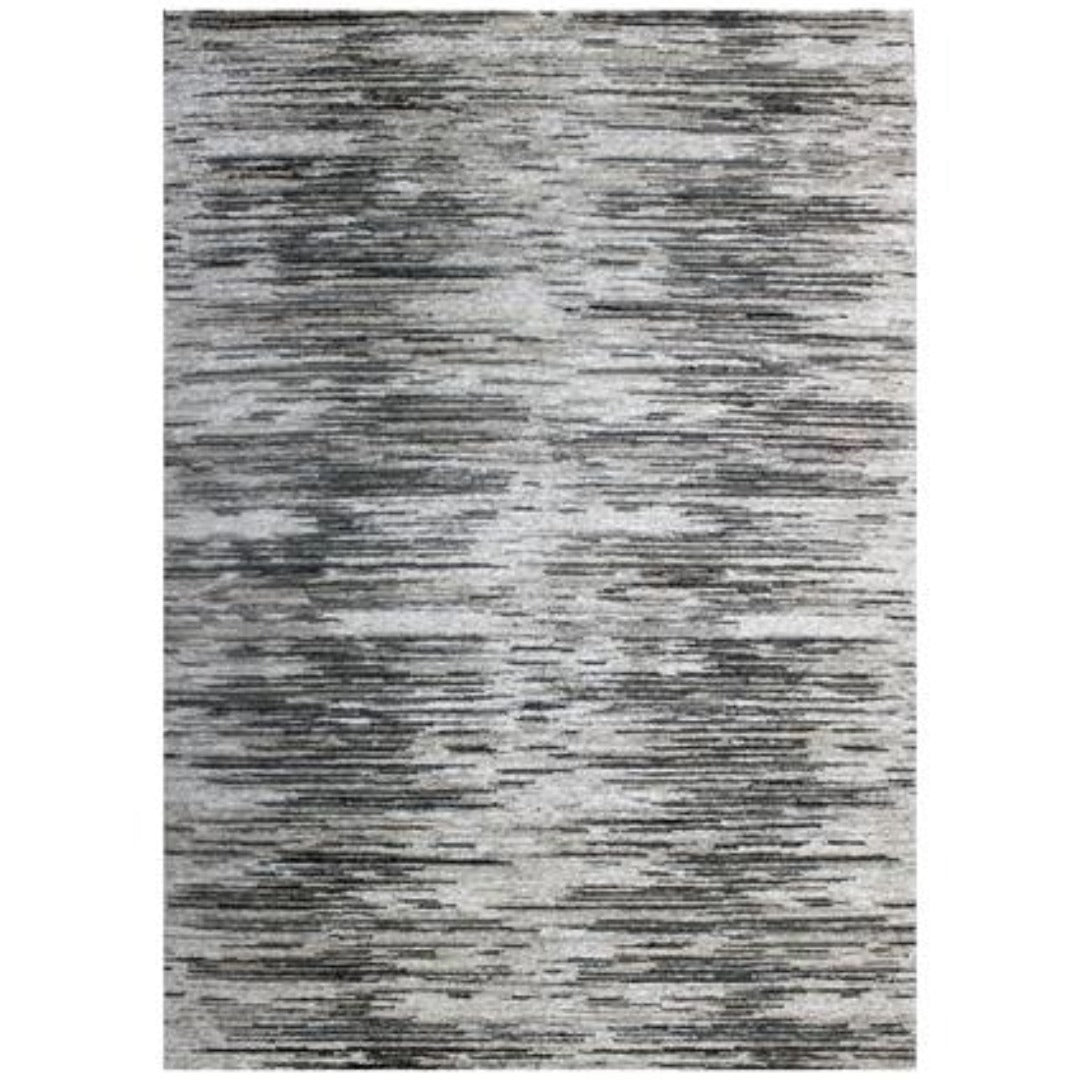 Woven from 100% wool, this rug features a linear strié design in tonal grays with a soft, heavily textured pile. Its neutral palette and subtle variation make it a versatile foundation for both modern and classic interiors.
