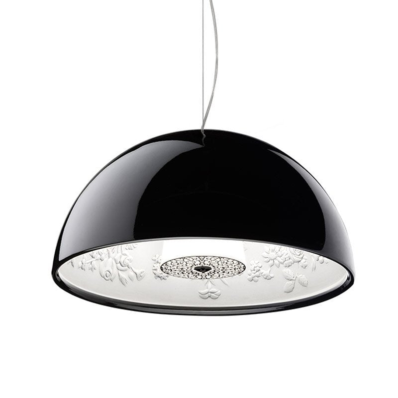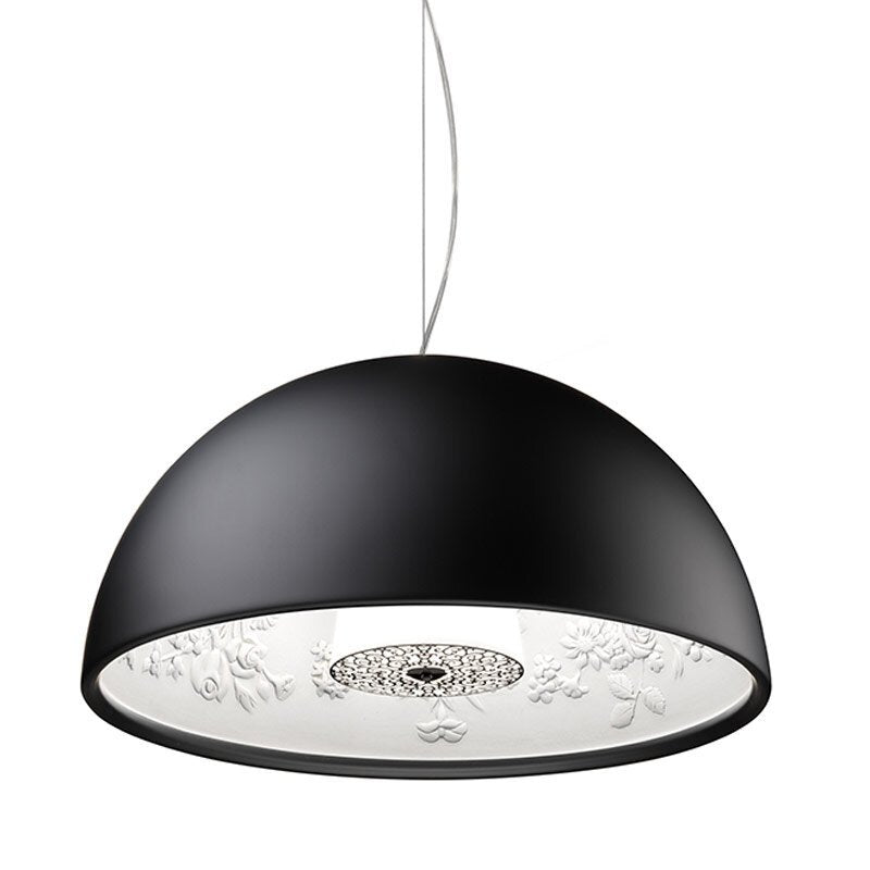 Imagine a stunning display blooming above you: Created by Marcel Wanders, the Skygarden is just that. A gracefully hanging hemisphere, the pendant lamp makes a powerful impression with its sheer size. However, it is the inner diffuser in white-painted cast plaster that steals the show. Standing beneath it, you will see the intricate design that gives this piece its name. The iconic lamp that brings to any home the magic of a decorated ceiling is now in a new, smaller version.
