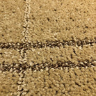 Beige nylon cut pile with contrasting brown and tan grid loop.